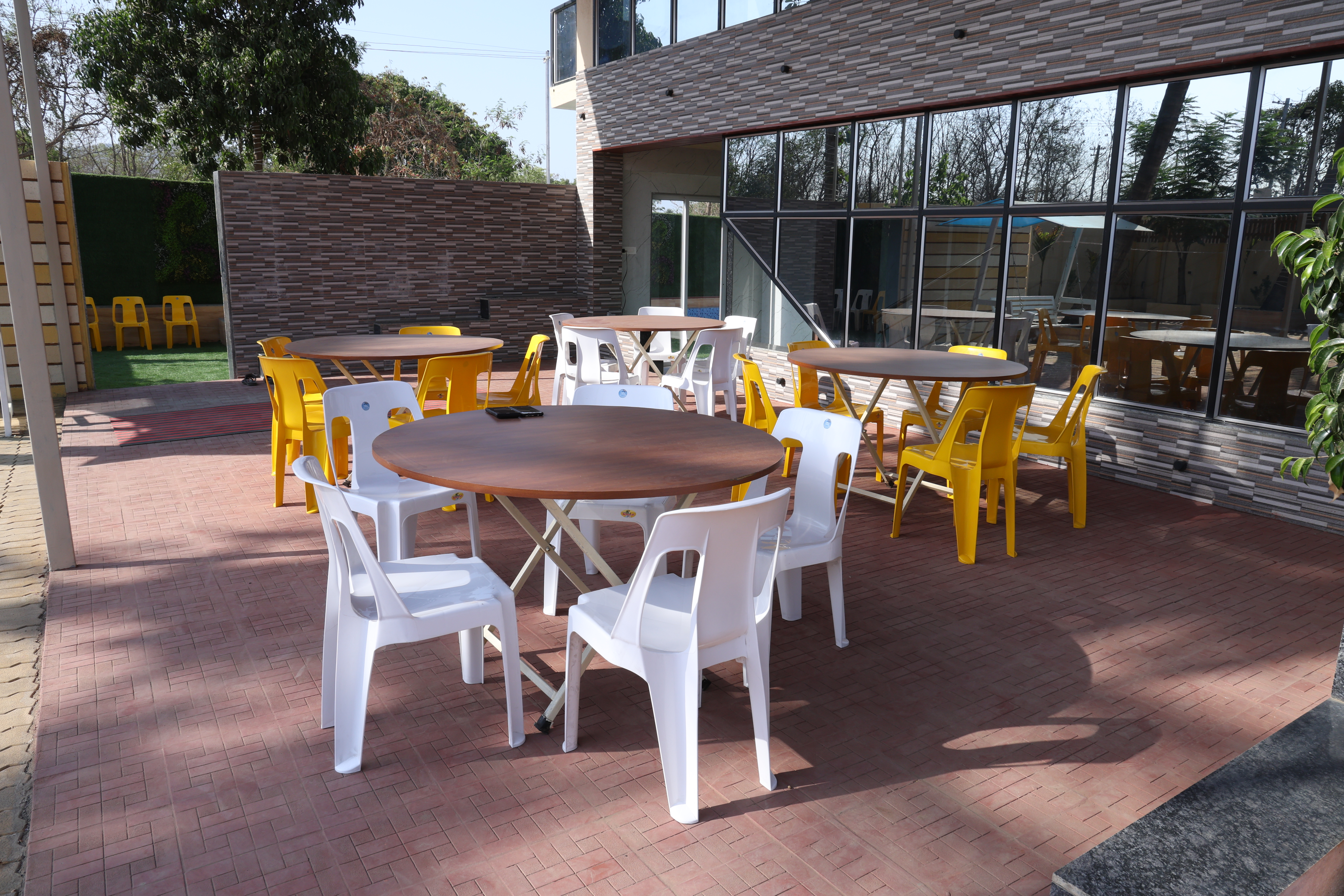 A massive, flat lawn and covered options make Prajakta Farm House ideal for weddings, birthdays, exhibitions, and large banquets. Power access, vendor parking, staging areas, and on-site catering kitchen available.